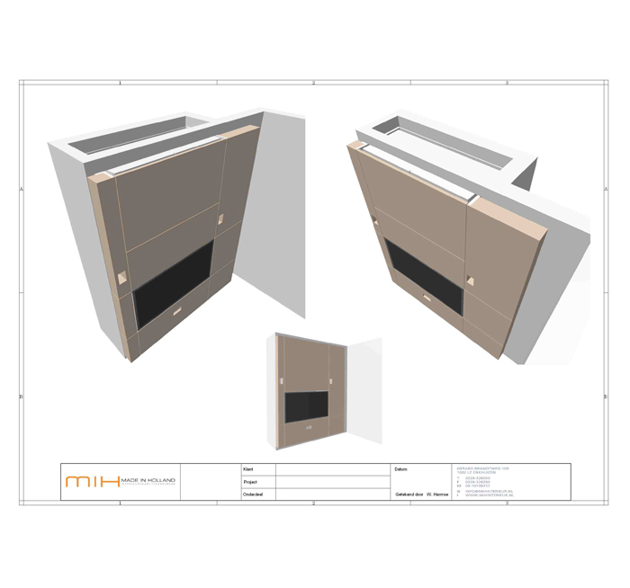 Elk meubelstuk of deel van het interieur moet eerst samen met de klant ontworpen worden waarna zorgvuldig te worden uitgewerkt tot een bouwplan en een 3D impressie.